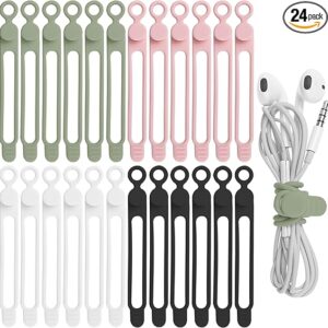Nearockle 24Pcs Silicone Cable Straps Cord Organizer for Bundling Earphone, Phone Charger