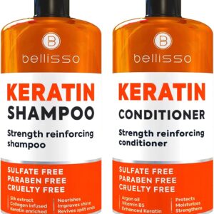 Keratin Shampoo and Conditioner Set – Sulfate and Paraben Free – Salon Thickening Treatment for Dry